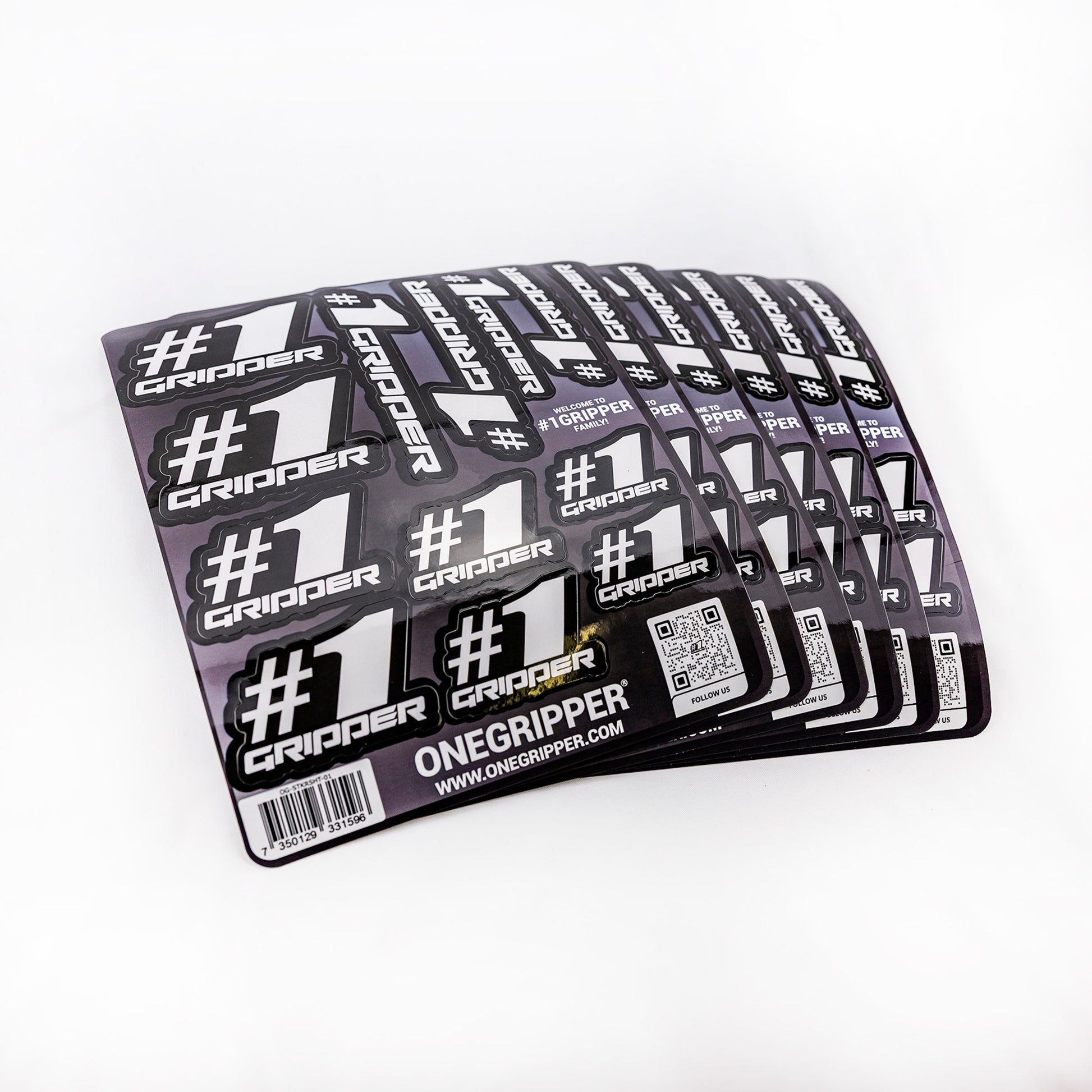 Onegripper sticker sheet with 12 individual stickers. Perfect for your helmet, bike, phone or anywhere.