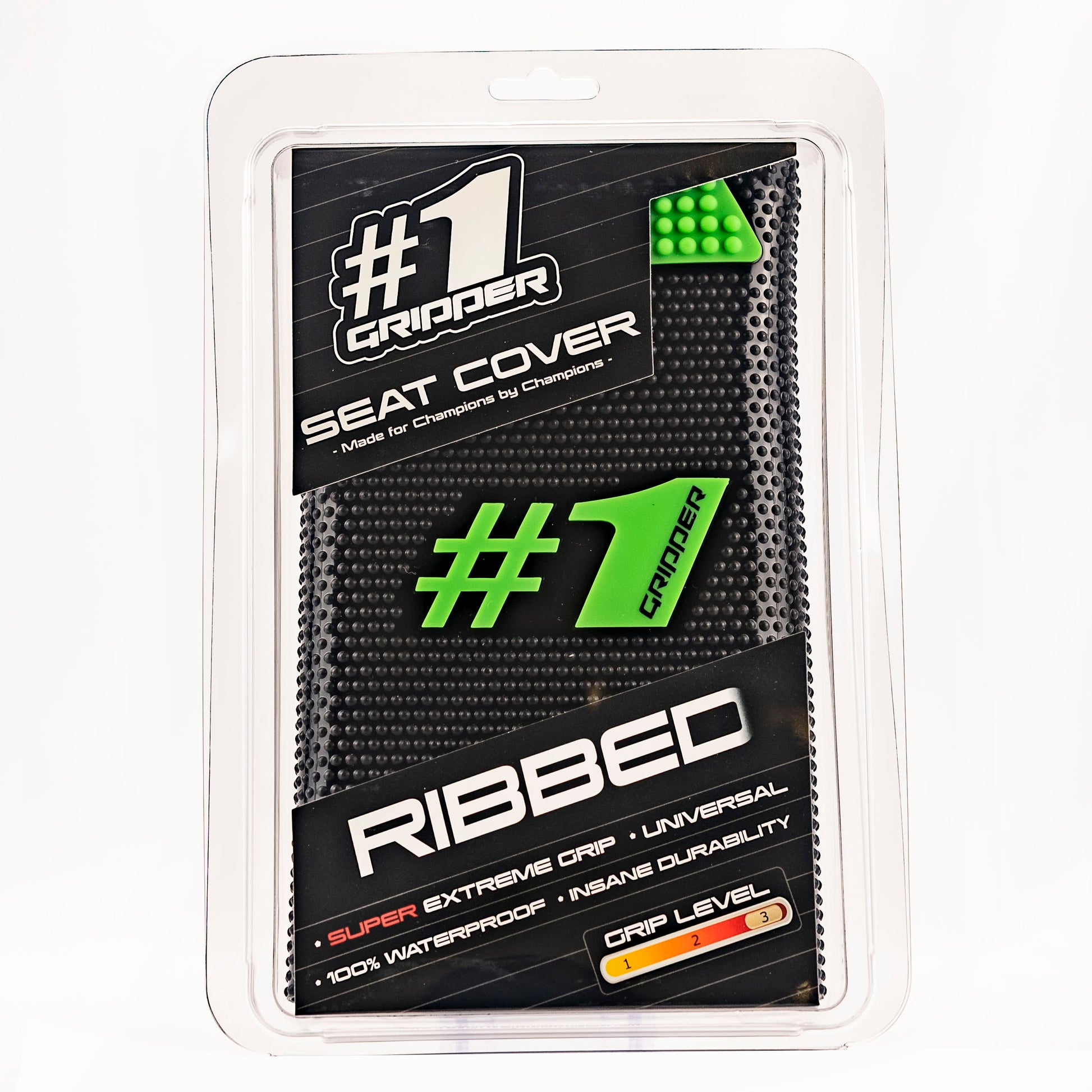 RIBBED is equipped with the new unbreakable solid logo and it's also possible to stretch it out up to 8% for the biggest oversize seats. After you have stretched and installed the cover it wants to go back to its normal size which means it will be super tight on the seat.